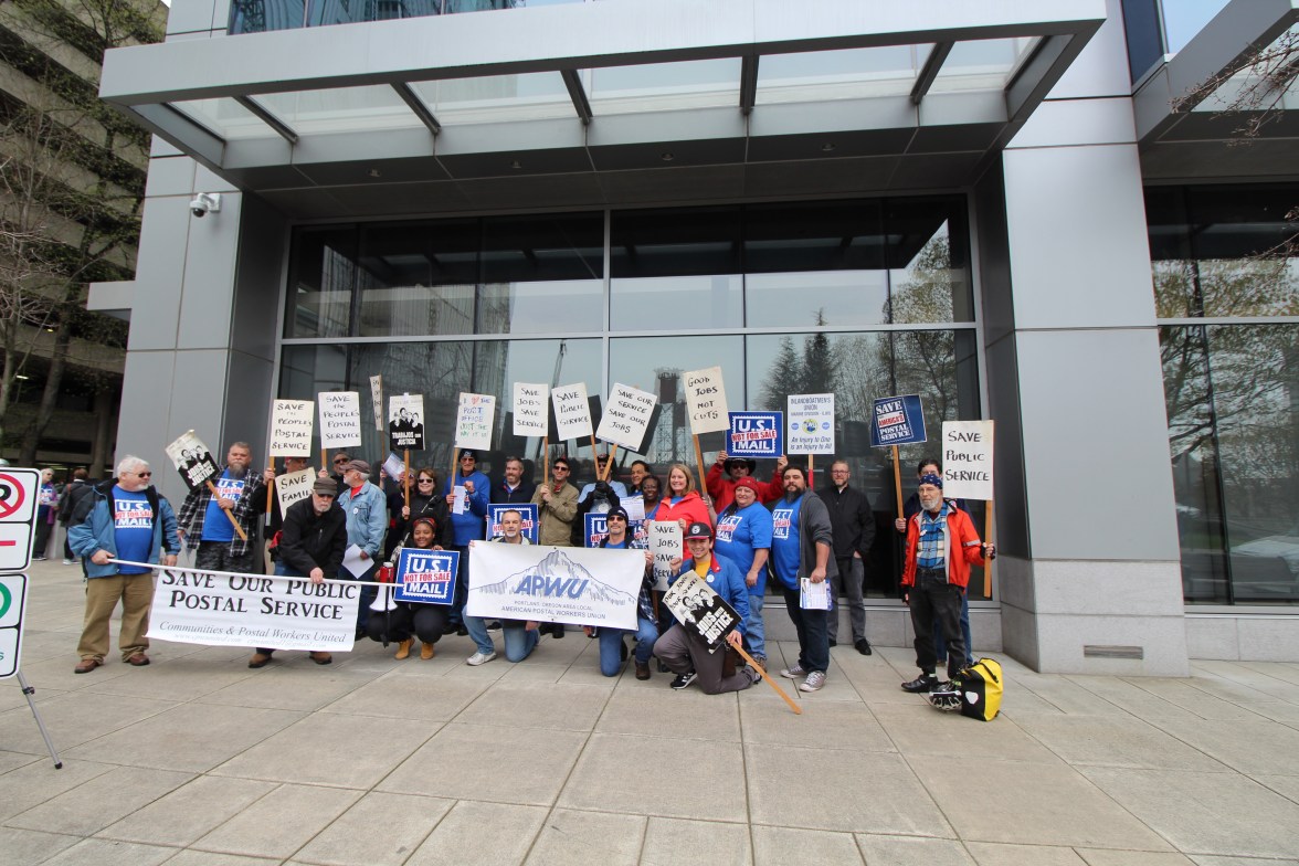 American Postal Workers Union representing Portland, Astoria, Aurora, Banks, Battleground, Beaverton, Boring, Brush Prairie, Canby, Columbia City, Estacada, Gladstone, Gresham, Hillsboro, Kelso, La Center, Lake Oswego, Longview, Marylhurst, McMinnville, Moro, Mosier, Newberg, Oregon City, Rufus, St Helens, Sherwood, The Dalles, Troutdale, Tualatin, Wasco, West Linn, Wilsonville, Woodburn, Woodland
