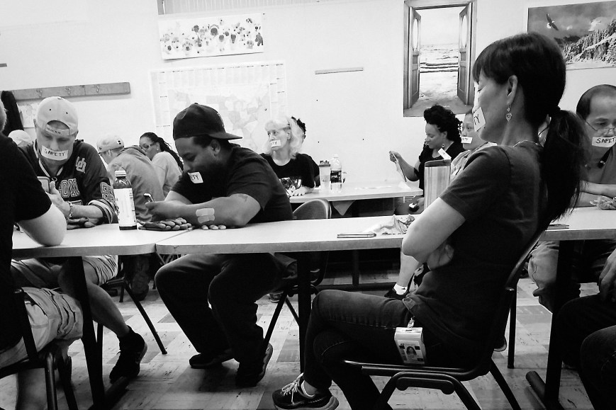 Portland Oregon Area Local Members stand in solidarity with our Safety Advocates and don protest tape during safety talks